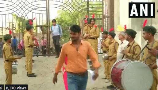 印度北方邦巴格帕特县的一个投票站,打鼓撒花欢迎选民的场面 推特视频截图