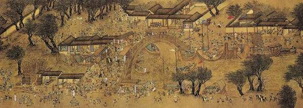 这卷明代仇英《清明上河图》的传世作品共有2卷,均藏于清宫内府,在清代乾隆年间编撰的《石渠宝笈》中有记载。大英博物馆收藏的这卷明代仇英《清明上河图》,原藏于北京紫禁城内的重华宫,重华宫是乾隆皇帝在登基前的住所,本名“乐善堂”,后更名为“重华宫”,意为“肇祥之地”。1900年八国联军攻入北京城,此画遭到侵略者的掠夺,流落英国。另一卷则幸免于难,后被末代皇帝溥仪带到东北长春伪满皇宫,1945年苏军解放东北,此画被苏军缴获,新中国建立后苏联方面将此画移交给东北博物馆(今辽宁省博物馆),所以辽宁省博物馆收藏有另一卷的明代仇英《清明上河图》,两卷各有千秋,留给后人的却是无尽的遗憾。