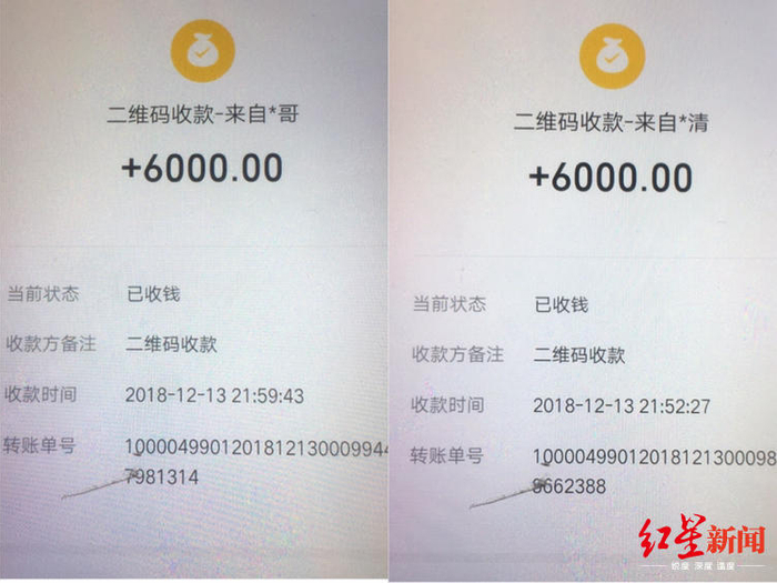 刘母曾在民警协调下,分别收取阮越、阮淼家属6000元钱。