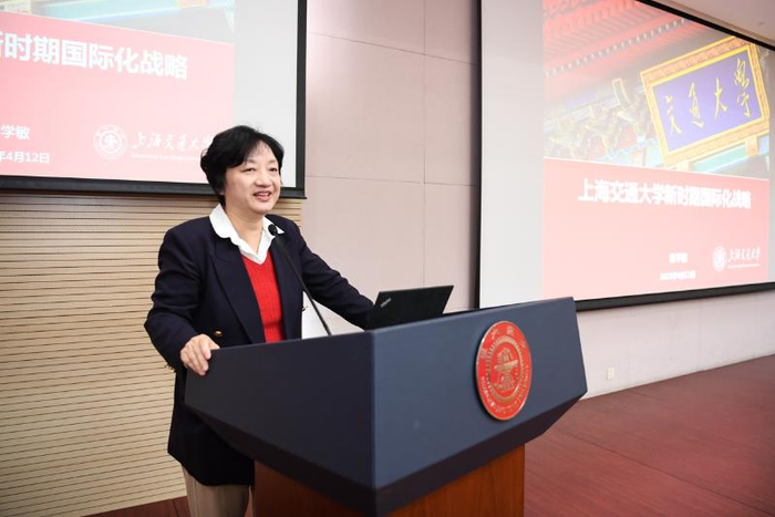徐学敏全面报告了学校新时期国际化战略蓝图。从高等教育国际化的背景谈起,比较了世界上不同时期发达国家高等教育国际化的政策与影响力,认为上海交大的国际化具有“天时地利人合”之优势;分析了国际化现状,列出了存在的主要问题;推出国际化战略在学校层面上的五大举措:推进四个海外中心建设、拓展学校国际影响;以科研合作为抓手,发展战略合作伙伴;强化学生海外深度访学、落实扩大联授学位项目,助力国际化育人;搭建海外访问学者“金字塔”构架,促进学科发展;建设国际文化中心,增强国际校园氛围。为落实战略实施,学校将积极配套政策与资源,支持院系制定各具特色的国际化发展战略,资助学生海外深度访学,本科生海外深度访学列入直升考虑因素,重点推进的双学位项目名额给予配套支持,资助全英文课程建设,资助实验室进一步面向国际生科研实习开放等,并以基于客观数据和主观评价指标体系的年度国际化考核来监测和评估各个学院国际化战略的实施效果。徐学敏指出,新时期国际化战略的发布是学校国际化事业的再出发,号召校院联动协同推进战略实施,共同开启新征程。