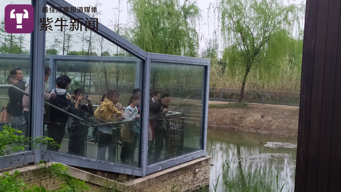 4月14日中午,扬子晚报紫牛新闻记者来到苏州市动物园(上方山森林动物世界)斑鳖池,隔着玻璃看到水面上零星漂浮着几片水草,衬着绿色的池水,显得十分平静。午后的天色有些阴沉,气温不算低,观赏区内守着不少游客,静静等待斑鳖显露踪影。大约20分钟过去了,水面依旧毫无波澜。当记者询问保安今天雄性斑鳖是否出现过时,保安说:“再等等,会出现的,140斤呢,只要出水就一定能看到的。”
