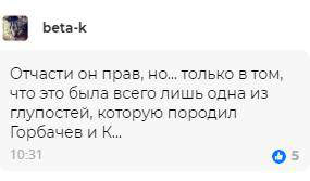 beta-k:“他在一定程度上是对的,但唯一的问题是,他关于戈尔巴乔夫和叶利钦的看法很愚蠢……”