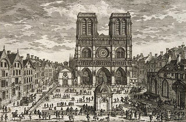 当时,塞纳河两个岛屿中的一个、位于塞纳河东端的中世纪大教堂由路易七世选中,被拆毁为地基,以便建造新的大教堂。