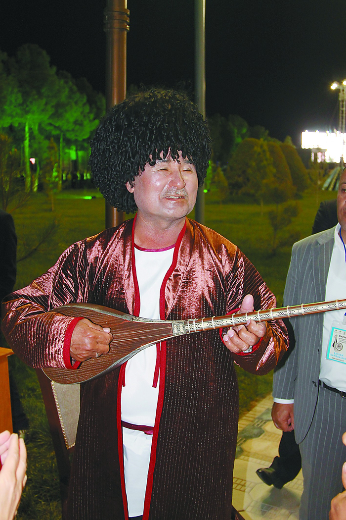 尤为可贵的是,这些“荷马”们还活着,他们传承的不是文字,而是更加本源的口头说唱。在艺术节开幕式结束后,笔者遇到参与表演的“人民巴赫希诗人”之一诺尔马托夫。他告诉笔者,“印在书上的史诗只能是死的文字,而只有艺人们把它演唱出来,才是活生生的史诗。”