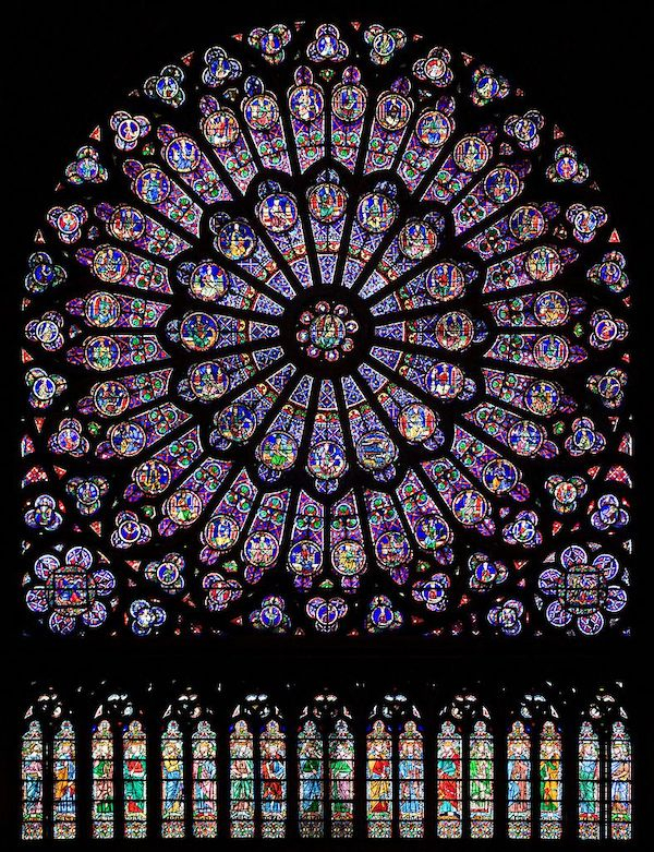 在大火的猛烈攻势下,教堂内部最为著名的彩绘玻璃花窗——“玫瑰花窗”——也已被烧毁。据说,为了保住这些珍贵的花窗,二战德军占领巴黎前,巴黎人特意将花窗从教堂移走保存,没想到,它们却在和平年代毁于大火。