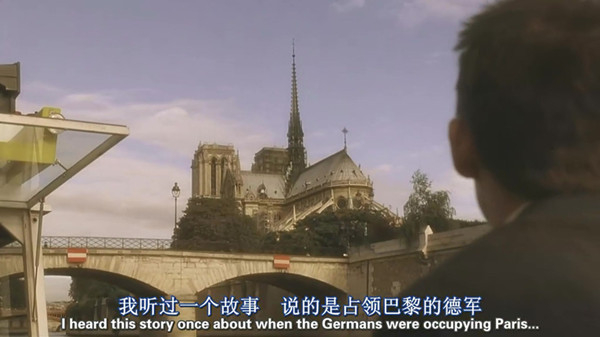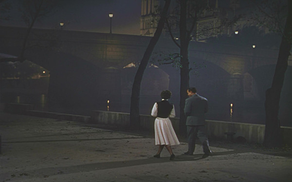 在这部以巴黎为背景的电影中,最著名的一段歌舞片段即上演于巴黎圣母院对岸:金·凯利(Gene Kelly)饰演的穷困潦倒的美国画家与莱斯利·卡伦(Leslie Caron)饰演的售货员丽丝先是漫步在巴黎街头,之后停步于塞纳河的桥边,情之所至下,随着格什温兄弟的名曲“Our Love is Here to Stay”翩翩起舞,而桥的对岸圣母院的钟塔若隐若现,仿佛是两人爱情的见证者,又切合巴黎浪漫中不乏历史感的独特城市氛围。