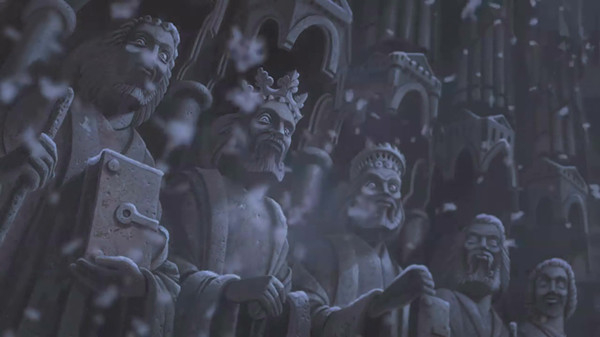 故事的改编或许见仁见智,但迪士尼动画取材的扎实与画面效果的精良是毋庸置疑的。大到圣母院的全景,小到门边伫立着的表情各异的石像都事无巨细地呈现在本片中。就连这次严重烧毁的哥特式塔尖的具体构造和装饰,在片中也有细致地描绘。最为有趣的是,以往真人版中很抢镜的钟楼上的怪物雕塑,在动画版里活了起来,成了与卡西莫多谈天吐槽的朋友。