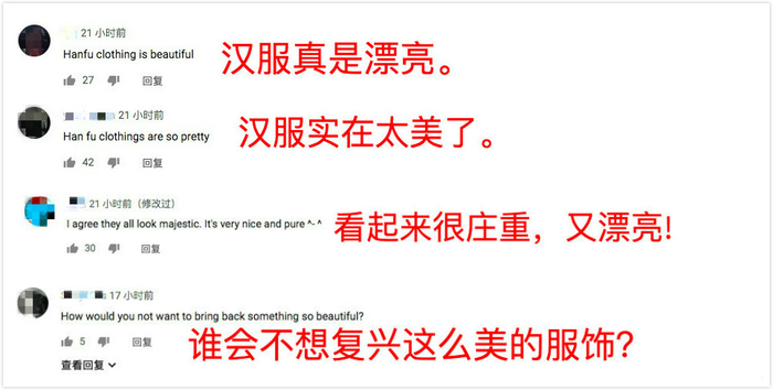 接受港媒采访时,有汉服爱好者表示,“汉服凝结着中华传统文化的美学内涵,身着这种传统服饰可以彰显民族自信。”
