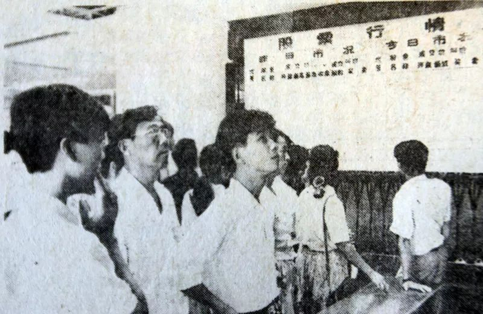 1990年9月初,深圳市股票市场出现小“高潮”。全市股票成交额连续几天日超一千万元。图为众多市民密切关注行情。