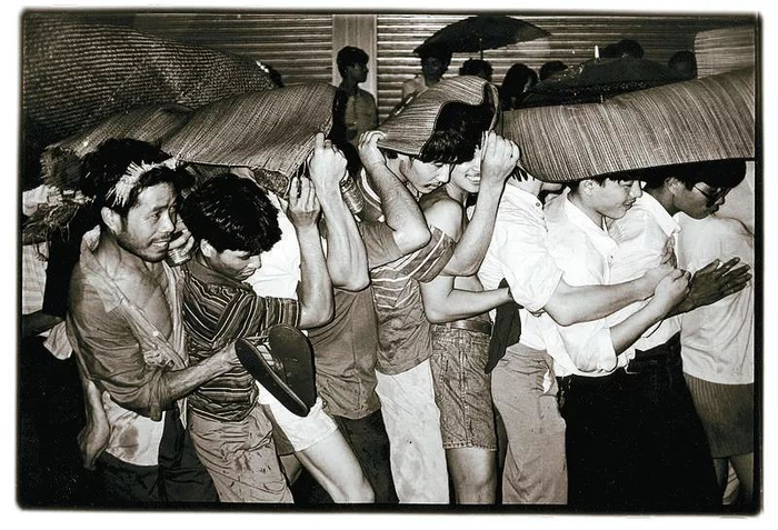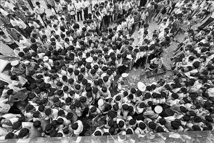 1992年深圳“8・10”股潮中,排队购买股票认购证的人群密不透风,图为当时的300个股票认购证发售点之一。
