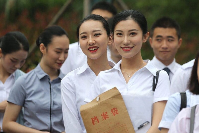 当天上午,招聘现场大排长龙,几乎每一位面试者都化了精致的妆容。补妆、练仪容仪态、对着镜子练习微笑……每位应聘者都在忙着准备一会儿的面试。一位应聘者说,她早上5点钟就起来化妆、盘头发了,就是希望可以圆自己的空姐梦。多彩的服饰、稚嫩的脸庞、以及坚定的眼神使这群“00后”格外的可爱。“我在南京一个大专院校读财经专业,为了这次考试,特地报了半年考前培训班。”来自南京的19岁考生李佳佳告诉记者,空乘礼仪、化妆、舞蹈、空乘英语、体能训练等课程是空乘艺考生的必修课,他们每天需要进行长达9个小时的训练。