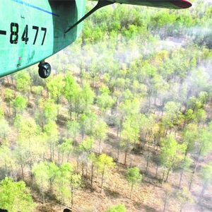 4月14日,一架农用飞机在第一师10团防风林带上空喷洒杀虫剂。自4月上旬以来,兵团对叶尔羌河、塔里木河流域的第一师、第二师和第三师的35万亩野生胡杨林和人工林实施飞防,有效控制食叶害虫对野生胡杨林和人工林的危害 王志清摄