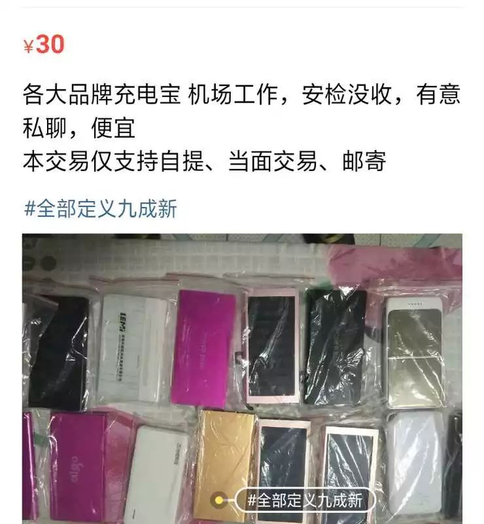 一个注册地显示在广州的卖家发布了十个商品,包括“香体喷雾”、“定型喷雾”、“防晒喷雾”、“止汗喷雾”等,还有一个上海卖家专门售卖安检查扣的二手充电宝,市面价格上百元的10000毫安充电宝,在她那里38元两个包邮任挑任退。
