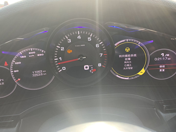 霍先生称,自3月8日出现故障后,车就一直停放在顺汇保时捷店。霍先生提供的车辆出现故障时仪表盘照片显示,仪表盘出现“转向辅助系统故障,转向力已增大,允许驾驶”提示。