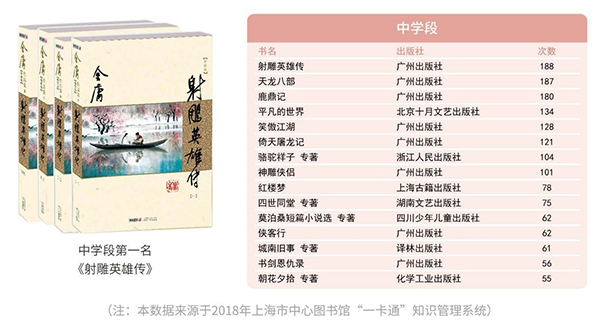 原标题:“2018上海市少年儿童阅读报告”出炉:中学生最爱金庸