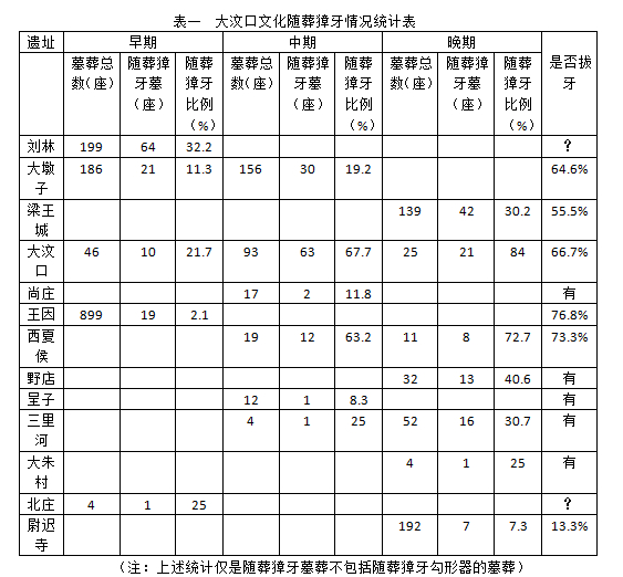 一个有趣的现象是拔门齿与随葬獐牙两者几乎是同步出现又同步消失的,从世界民俗学考察来看,獐牙可能是灵魂在转世之前的一个临时归宿,生前拔掉牙齿是为了祖先的灵魂进入体内获得重生,死后随葬獐牙则是为了弥补生前拔牙造成的身体残缺。