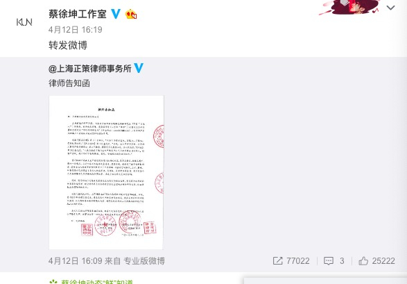 面对恶搞,蔡徐坤工作室选择法律武器