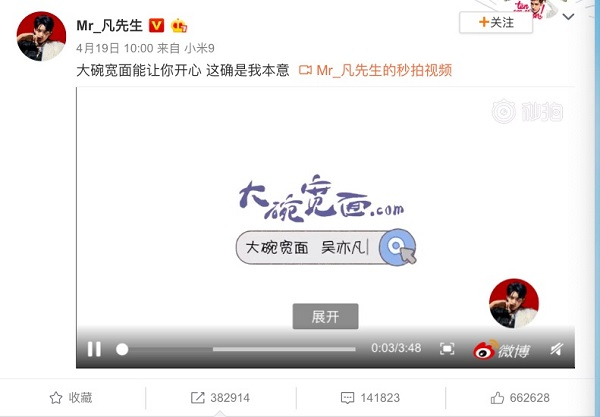 《大碗宽面》发布后,弹幕刷起了“吴亦凡对不起”