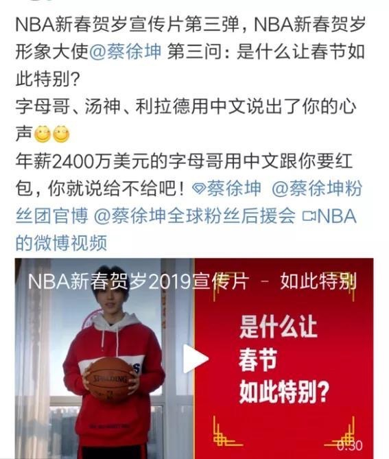 NBA邀请了蔡徐坤担任新春贺岁形象大使