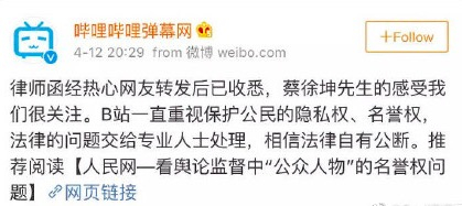 B站回应蔡徐坤律师函