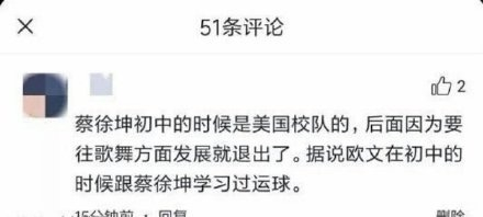 正如每次流量被黑大概只有10%是因为他们本人、90%是因为粉丝一样,这次蔡徐坤受到大面积嘲讽,也与其粉丝到处控评、争辩有关,而被嘲笑最多的,是某个ikun所说的“据说欧文初中时向蔡徐坤学习过运球”。