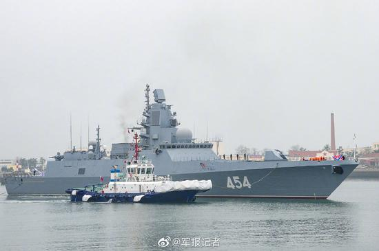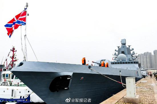 4月21日上午,俄罗斯22350型护卫舰“戈尔什科夫海军元帅”号抵达青岛大港码头,参加中国海军成立70周年多国海军活动。在圣彼得堡设计建造的“戈尔什科夫海军元帅”号护卫舰,是俄罗斯第四代搭载制导导弹的战舰,是22350型护卫舰的首舰。
