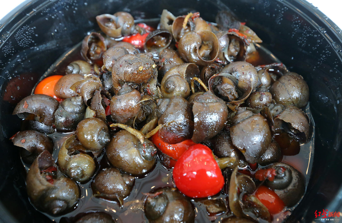 网红餐饮店里吃的香辣田螺、蒜香脆螺 专家鉴定都是福寿螺