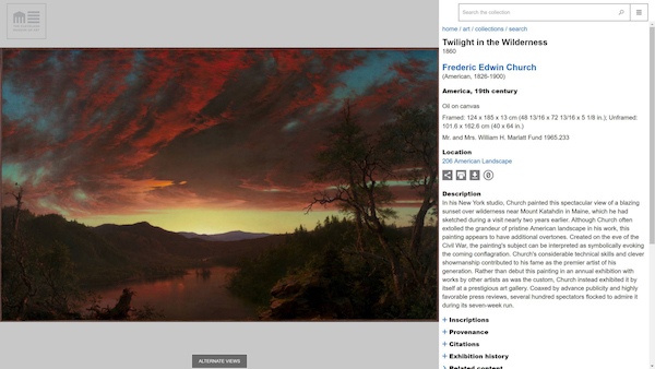 该博物馆的开放式访问项目涵盖了大量关于艺术品历史渊源的数据资料,其中包括作品描述、来源出处、展览历史和其他方面的信息。
