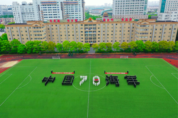 图说:海军军医大学350名学子,排列组成“中国共海军70”的字样。王立峰 摄