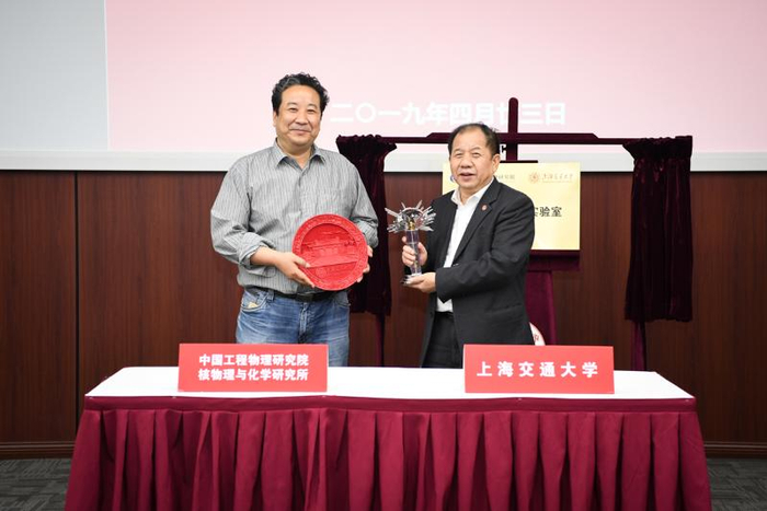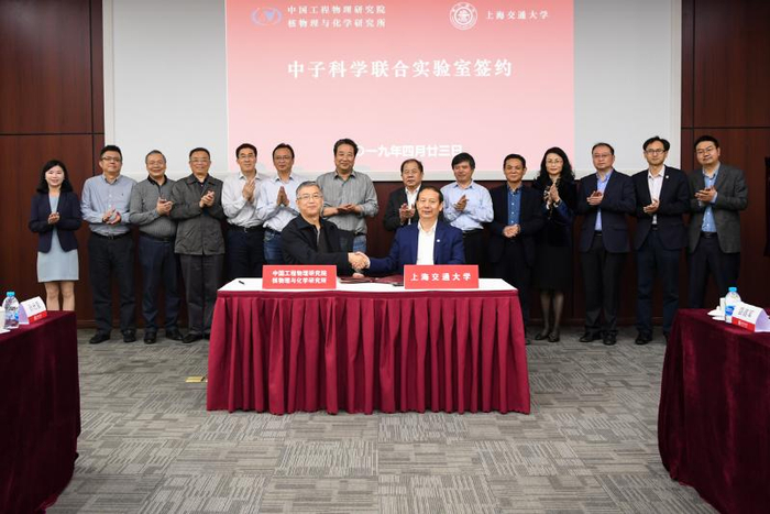 2019年4月23日,中国工程物理研究院核物理与化学研究所-上海交通大学中子科学联合实验室共建协议签约仪式在上海交通大学闵行校区举行。校长、党委副书记林忠钦,党委常委、副校长毛军发,研究生院、科学技术发展研究院、人力资源处、学生处等部处,材料科学与工程学院、机械与动力工程学院、化学化工学院等学院有关领导及代表出席签约仪式。中国工程物理研究院院长刘仓理、院办公室副主任蒋曦、综合计划部副部长陈新发、科研技术部部长张文平、核物理与化学研究所党委书记吴兴春等相关领导到校出席。仪式由毛军发主持。