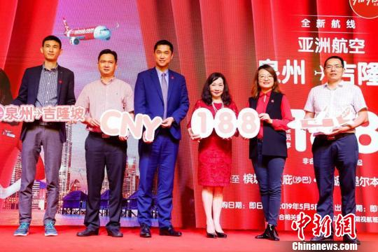 中新网泉州4月24日电 (记者 孙虹)亚洲航空公司24日在福建泉州召开新航线发布会称,亚洲航空新开的“泉州晋江—吉隆坡”往返直飞航线将于2019年5月1日正式首航。