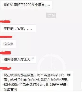 根据媒体报道,近日,两张有关江苏无锡市宜兴警方扫黄抓获1200名嫖客,在浴室付款超过600元以上人员均需到派出所接受调查的图片被大量转发。
