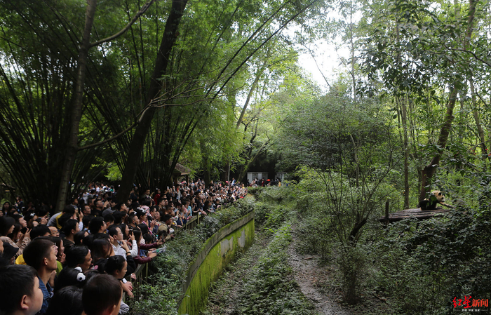 ↑2018年10月3日,成都大熊猫繁育研究基地,数万游客前来参观熊猫。