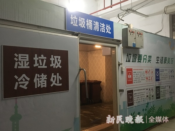 整个商场的垃圾箱房也经过了改造,四分类桶和标识清晰。尤其特别的是,箱房内增设了一个20多平方米的“湿垃圾冷储处”,控制器上的温度显示为13℃。物业负责人介绍,由于环卫清运湿垃圾有固定的时间,为了减少过夜湿垃圾的异味,便增设了冷储处。
