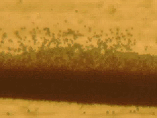 (a)高功率下的声流微涡旋 (b)低功率下的声流微涡旋