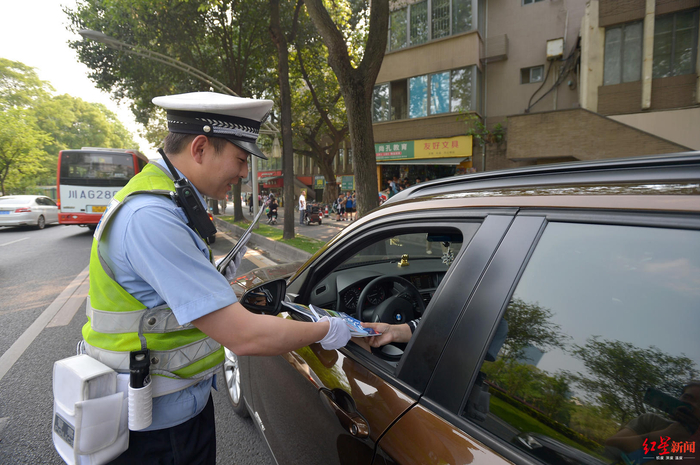下午3点45分,在成都市实验学校外的停车区域,一名接到孩子的家长准备离开,司机搬动方向盘,将车头移除,等待旁边车辆通行后,驶入机动车上。就在等待的时候,驾驶员拿出手机准备拨打电话,民警发现后上前进行制止。“驾驶员您好,请放下手机再开车。”交警四分局民警李彦铎告诉驾驶员,开车时拨打或接听电话不仅是违法行为,还存在安全隐患,车上还有孩子。家长慌忙解释,家里有急事需要去医院,正准备问一下地址。在民警的教育下,驾驶员将车停在了路边,熄火后才重新拨打了电话。