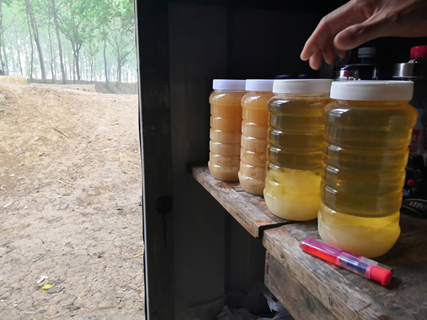 因为夫妇俩出门太急,二百箱蜜蜂丢在了树林里。2018年6月20日,他们赶回去处理蜜蜂,想把蜜蜂卖给人家,但一直找不到买主。那时正是采蜜的好季节,王家佳的蜜蜂却四处飘散,到现在只剩四五十箱蜜蜂。