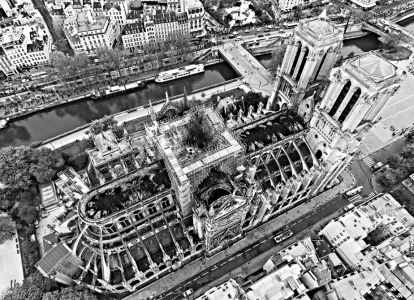 1、这张4月17日的航拍照片显示的是法国巴黎圣母院在火灾中的受损情况。新华社发