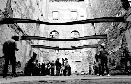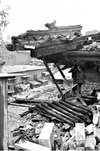 清华百年学堂 只剩下几根燃烧过半的木梁搭在砖墙上
