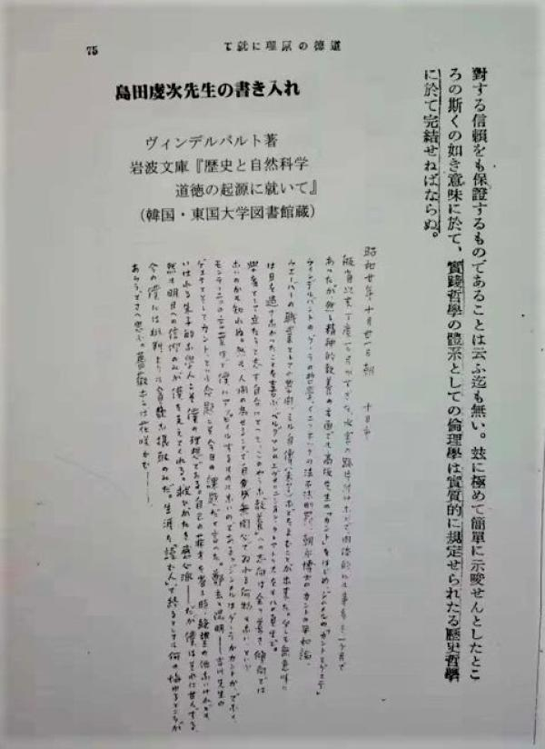 岛田虔次先生(1917-2000)从青年时代开始就自觉以成为“读者”(读书之人)为志向。因为某种机缘,先生的藏书全部归韩国的东国大学(校本部在首尔),也出版了厚重的藏书目录。在那里,不仅收藏有专业的汉籍,还有先生年轻时读过的汉籍以外的书籍。前些年我有机会访问东国大学,拜观了岛田文库,发现了一条宝贵的批注。1945年先生(二十八岁)回到故乡广岛期间,读完了文德尔班(Windelband)《历史和自然科学 关于道德的起源》的日译本后,在该书的空白处写满了感想,其中有这样一句话:“即使一生以‘读者’终老,又有何可遗憾的呢?”先生的弟子狭间直树教授(中国近世史)把先生的藏书印交给了我保管,将来我也打算捐赠给东国大学,其中有一枚印“岛田虔次读”,很好地体现了先生的“读者”抱负。近年,在美国出版了傅佛果(Joshua A. Fogel)《岛田虔次:学者、思想家、读者》(Shimada Kenji: Scholar, Thinker, Reader,莫文亚细亚出版,2014年)一书,是择取先生著述中的精华编译而成,著者傅佛果在书名中使用了“读者”(Reader)一词。