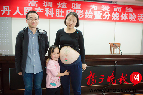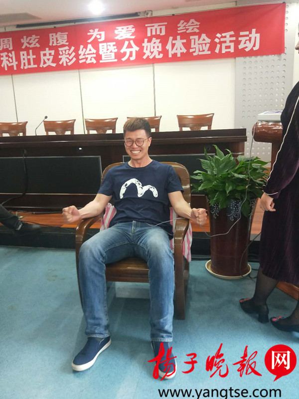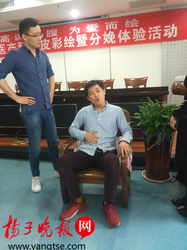扬子晚报网4月27日讯(通讯员 孙红娟 记者 万凌云)一场别开生面的肚皮彩绘暨准爸爸分娩体验活动,在丹阳市人民医院电教室举行。近30名准妈妈在产科医护人员的指导下“高调炫腹”,憨厚的小猪,可爱的笑脸……准爸爸们则用手绘画,为即将出生的小宝贝,送上了爱的礼物。