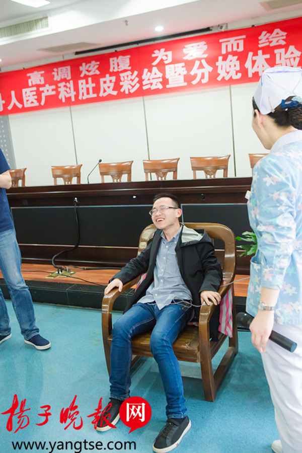 分娩痛仅次于烧伤痛,达到了十级。在分娩体验环节,“准爸爸”则亲自体验了分娩疼痛。医护人员用专业仪器模拟分娩疼痛,将两片电极片固定在准爸爸腹部,不断调高参数,让“准爸爸”体会到“准妈妈”们分娩的不易。