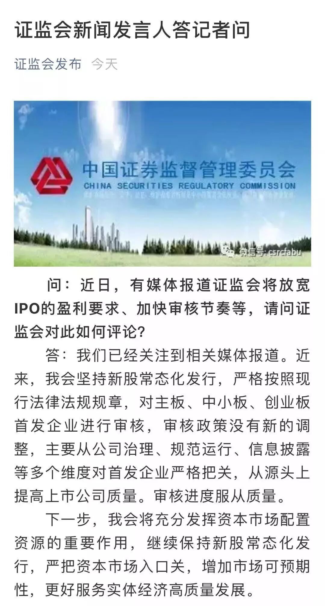 原标题:刚刚!证监会紧急辟谣!否认放宽IPO盈利要求和加快审核节奏