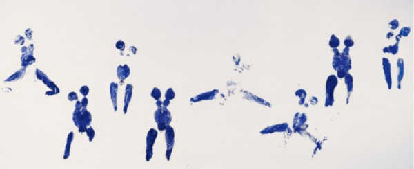 伊夫·克莱因,《无题人体测量学》 (人体测量106号),1960,布面色粉和人造树脂,200 × 500 cm。图片 © 伊夫·克莱因遗产;平面和造型艺术著作人协会,巴黎 : SACK,首尔,2019。