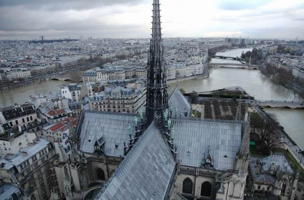 从巴黎圣母院钟楼俯瞰尖塔,2018年2月。崔金泽 图