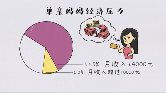 一个人带着孩子,既要工作又要兼顾家庭,这份报告显示,单亲妈妈们的生活普遍存在两大问题:陷入经济困境,还需承受经济、亲子关系、生活情感等多重压力。80%的单亲妈妈无法获得足额赡养费,63.5%的单亲妈妈月收入低于4000元,58.4%的单亲妈妈由于兼顾工作和孩子感到疲惫。受访者中,78.1%的人感受到生活情感的压力,身心惧疲。
