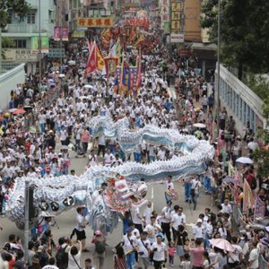 中新网4月28日电 据香港《大公报》报道,4月27日是农历三月二十三“天后宝诞”,香港各区天后庙香火鼎盛,并举办不同的庆祝活动,而全港规模最大的则是“2019元朗十八乡天后宝诞会景巡游”。38支来自各乡、堂的花炮队伍和舞龙舞狮,穿梭在元朗市中心各主要道路。据介绍,巡游规模是过去60年最盛大,大会表示约万人观看巡游。
