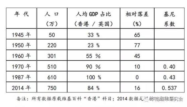 然而人们忽略的是1987年填平的差距,到今天(2014)香港与英国人均GDP相比较,却又产生16%的相对差距,恰恰跌回1970年之前!这与制造业“空心化”有没有线性关系?值得去探讨。还有,香港的基尼系数,四十年间从0.40水平一路飙升到0.537,与制造业“空心化”有没有线性关系?也值得学术界进一步探讨。