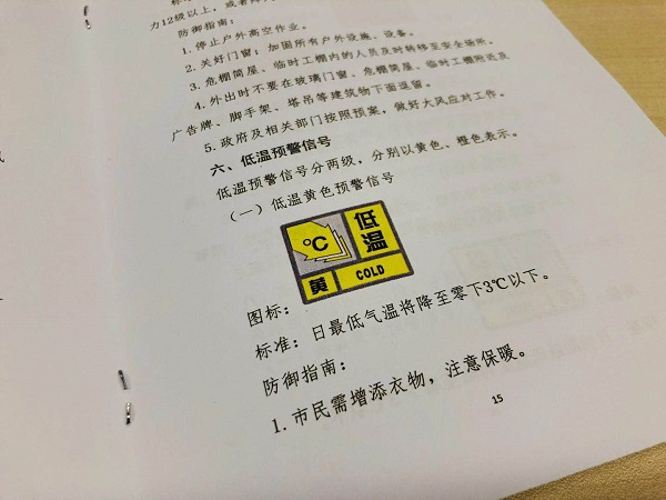 新民晚报讯(记者 马丹)今后低温也要拉“警报”了!为了适应超大城市精细化气象服务的需求,上海气象灾害预警信号的发布标准及防御指南将进行调整和完善,今年6月起正式实施。在新起草的《上海市气象灾害预警信号发布与传播规定》(以下简称《规定》)里,调整了预警信号种类、分级和标准,增加了低温预警信号,对暴雨标准作了重点修订,降低了暴雪预警信号的发布标准等。同时,细化了预警信号发布与传播的要求,强化了科普宣传和应对要求。