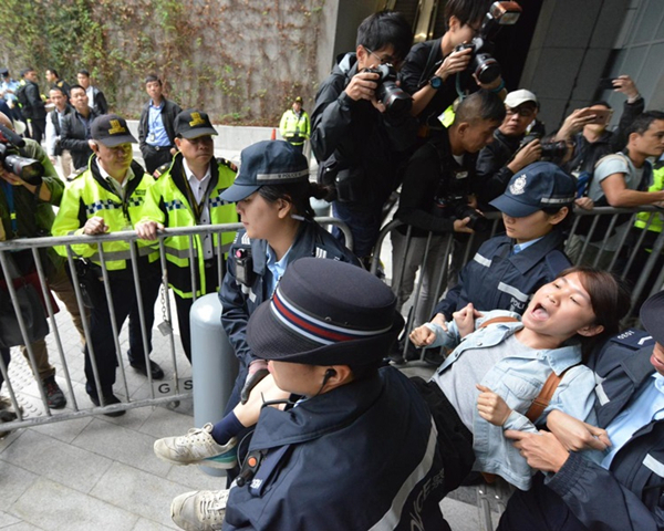 3月15日,“香港众志”成员等一行10余人强闯香港政府总部,抗议《逃犯条例》修订,被警方抬走 图自橙新闻